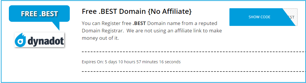 You can Register free .BEST Domain name from a reputed Domain Registrar. We are not using an affiliate link to make money out of it.